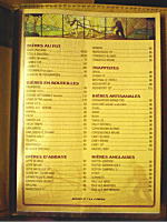地方都市ブイヨンのビアカフェで、28種類のビールを揃えていました。フランス語圏なのでメニューはフランス語のみ。ブイヨンにはマイクロブルワリーが2つあるので、地元のビールを別項にしています。