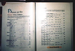 70種類を超えるビールをメニューに載せています。珍品のウェストフレテレンの3種類やロシュフォール6も含む全種類のトラピストビールがメニューにありました。ランビックなどもスペシャルビールの項に掲載されています。オランダ語。