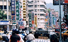 宿泊した亜都大飯店は民権東路と吉林路の交差点角にある。その交差点、民権東路から北側の吉林路に、茶屋問屋街があった。この通りはお茶屋さんの緑色の看板が乱立している。 それにしても、台湾の道路にはバイクが満ち溢れ、排気ガスで息苦しい。中国本土では自転車だが、台湾はバイク。交通量は多い。 |