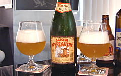 8/18(月)この日は白ビールの飲み比べの日。与力が帰る際に置いていった白ビールリストに載っているビールで、あと残る白ビールは、シリー醸造所のTitjeと、アベイ・デ・ロックのブロンシュ・ド・ゾネルの2種類。いずれも廣島輸入のものでドライ物。ちょっと飲みたくないなと思いつつ、思い出したのがセゾン・デポートル。 意表をついた選択。セゾン・デポートルは、セゾンの名がつくのでセゾンビールに分類されるが、実際には小麦(German Wheat)を使用したウィート・エールでもある。ベルギービールは一つのカテゴリーに入りきらないビールが多数ある。 さて、このビールが輸入されたときは、非常に喜んだものであるが今となっては、ドライな感じがどうしても気になる。リーファーでこのビールを飲んだらきっと感動物なんだろうな。明るいゴールドで、酸味やオレンジピールの味がある。 |